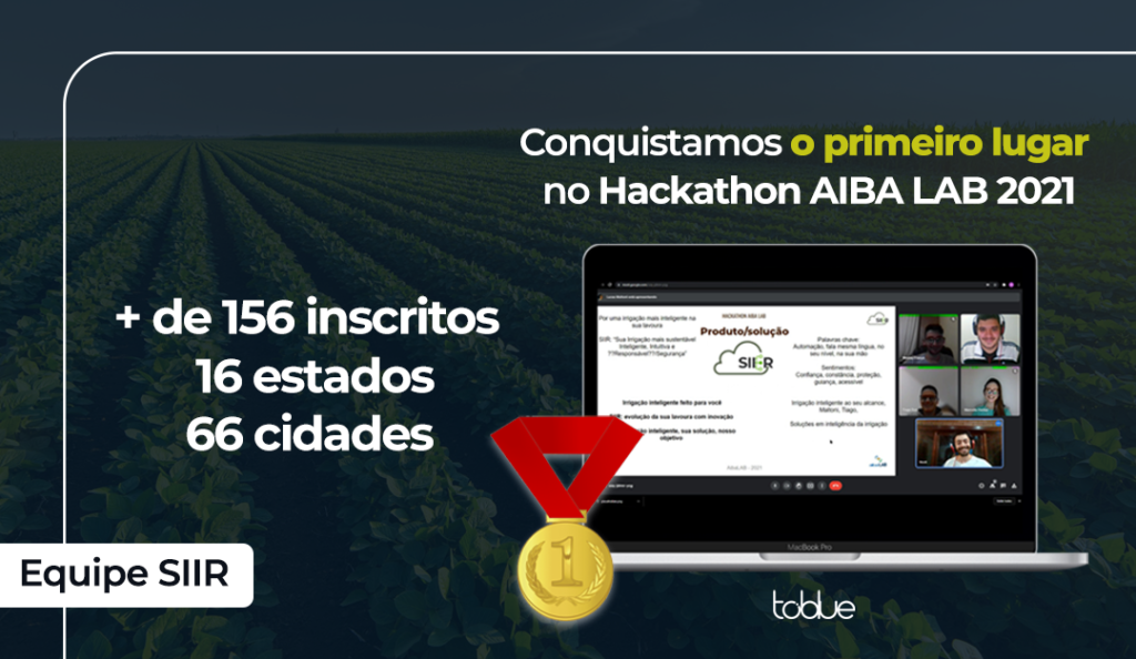 Parte da equipe do time toblue venceu a primeira edição do Hackaton AIBA LAB.